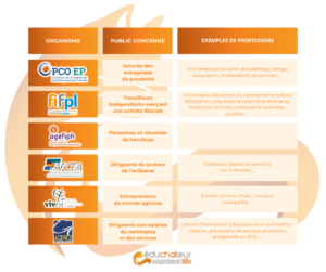 L’accompagnement des bénéficiaires en situation de handicap se fait grâce à des contacts d’experts dans le domaine, contactés par Mme Maud Lefèvre, référente handicap chez ÉDUCHATEUR, lorsque cela se présente. Pour connaître les différents partenaires en fonction des régions ciblées par nos formations, cliquez : ici.